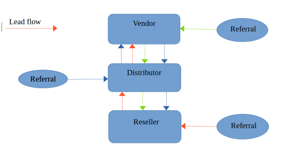 Once the referral comes into the distributor, it gets qualified, passed to partner or registered with vendor. The lead flow works both ways in this instance. The referral partner is paid out at distribution level on the revenue from the overall deal or a fixed amount for the capture of the initial lead.