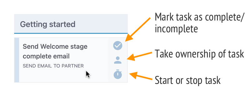 You can start or stop tasks. Starting a partner task makes the task visible to the partner.