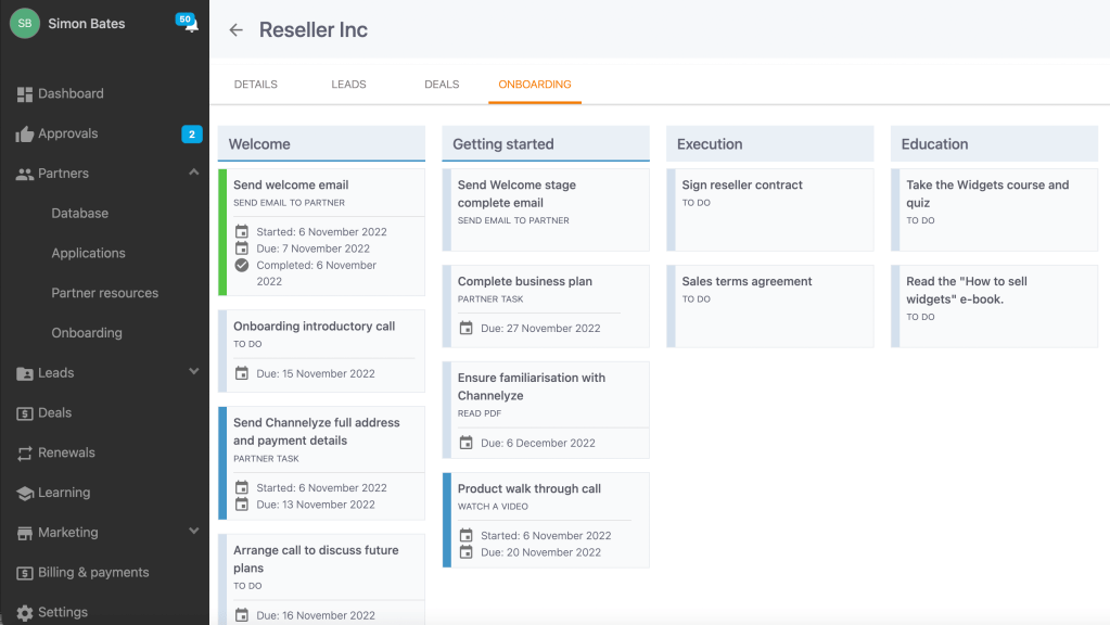 You can also take ownership of a task to give clarity to other users as to who is looking after this particular onboarding task for the partner.